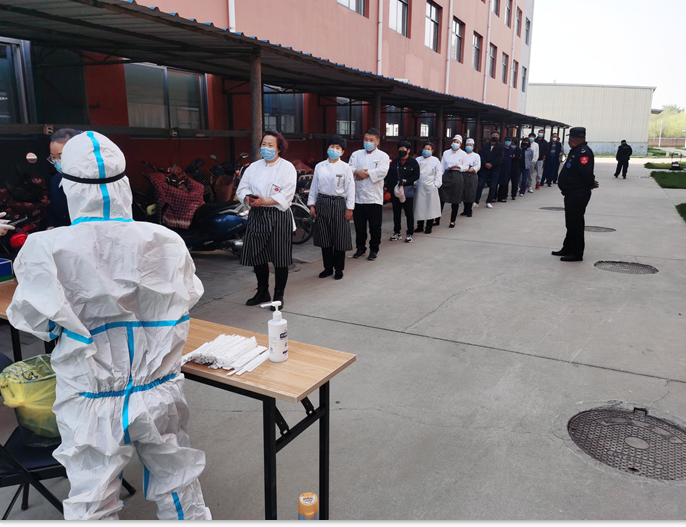 为切实做好疫情防控工作,全力保障企业干部职工的生命安全。4月13日,公司联系卫生服务部门到企为全体员工进行核酸检测,做到应检尽检,不漏一人,进一步降低疫情输入传播风险。公司党总支委员、工会主席、总经济师谢顺青,主持现场检测秩序,并带头接受核酸检测。