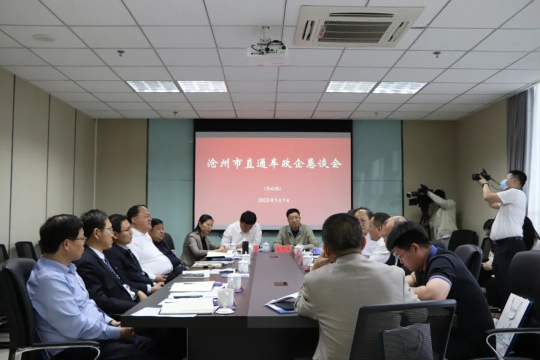 5月7日,副市长尹卫江在沧州市金控公司主持召开直通车政企恳谈会,与企业家代表面对面交流,问需求、听建议、解难题,助力企业更好发展。市政府副秘书长徐超,市委统战部副部长、市工商联党组书记、常务副主席田树波,市工商联主席张晓明,市金融控股有限公司董事长韩中文,市工商联副主席、市民营企业直通车服务中心主任刘泽胜等陪同座谈。