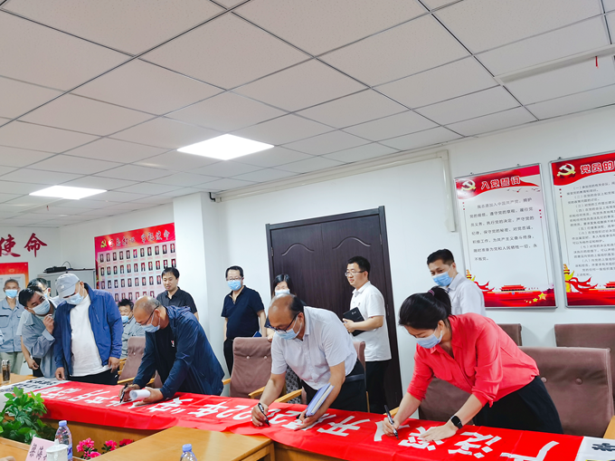 随后,梁海兵宣布2022年度安全生产月活动正式启动,并带领各科室及区域中心负责人在宣传条幅上签名。