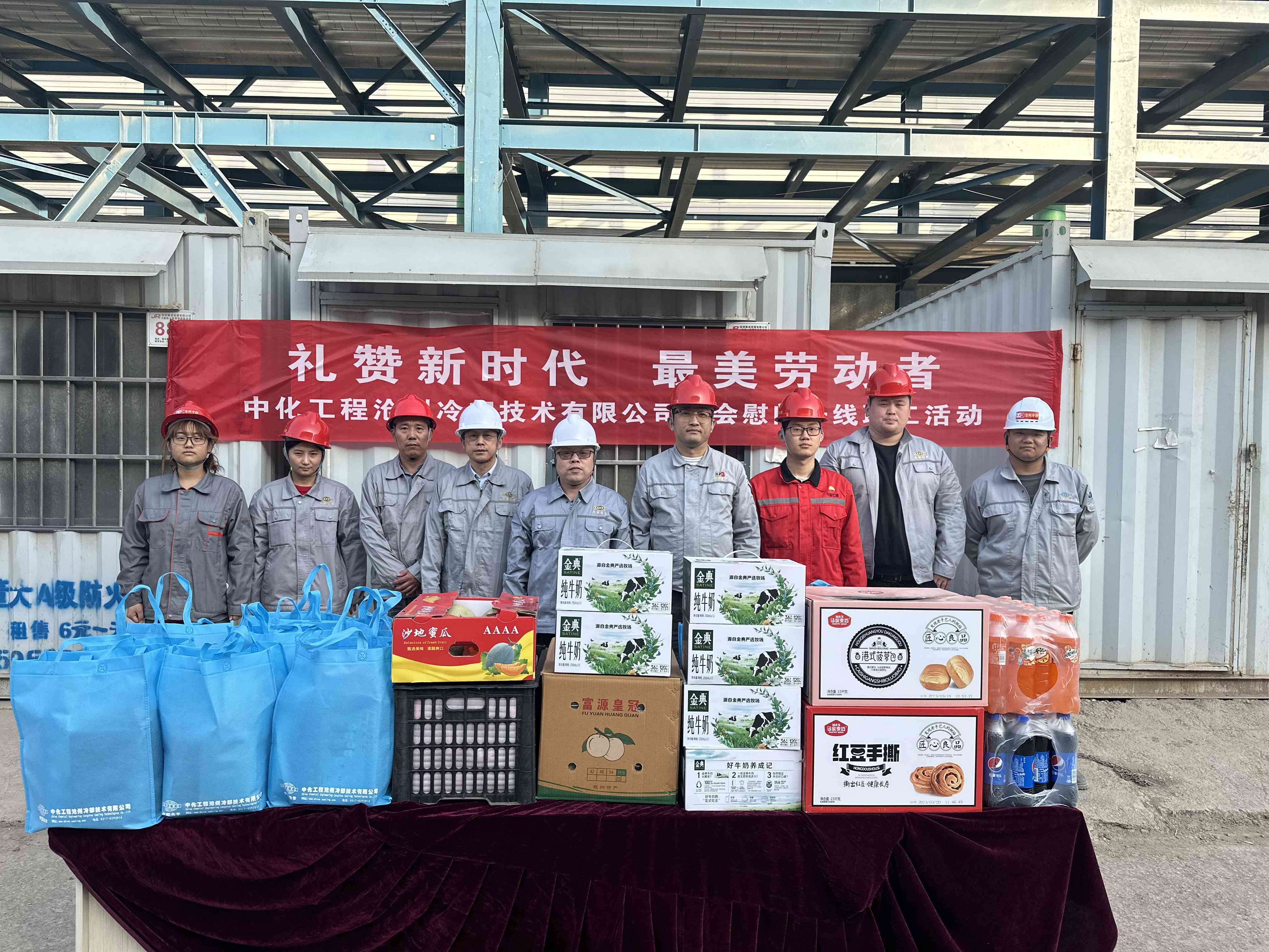 随后,为施工人员派发了慰问品,把关怀送到一线员工的心坎上,让一线人员感受到了来自公司的温暖与关怀。