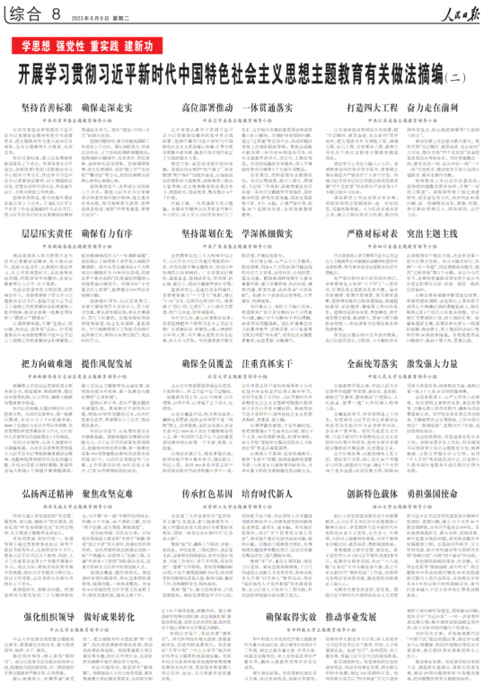 全过程抓特色,在奋进新征程中求实效。创新设置学生工作组,科学谋划不同学段学生党员主题教育方案,精准施教、分层分类强化学习引导。运用“千人百村”等实践活动平台,引导师生扎根中国大地服务中国式现代化伟大实践。
