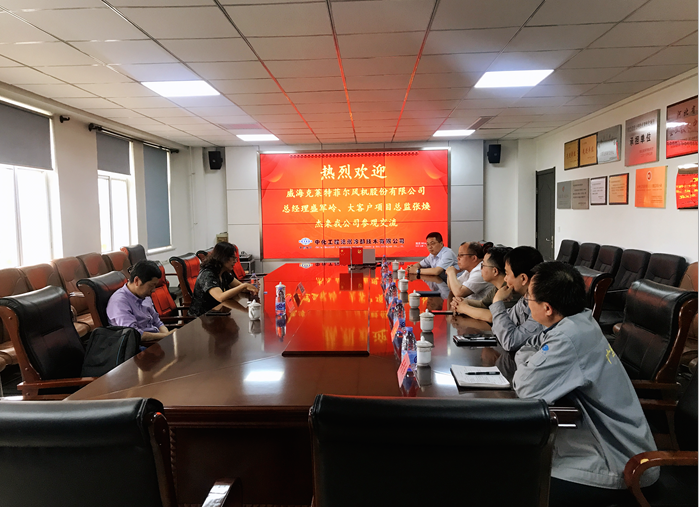 5月19日,威海克莱特菲尔风机股份有限公司总经理盛军岭、大客户项目总监张焕杰来公司参观交流,公司总经理梁海兵、党总支书记彭昕及总经济师谢顺青全程陪同。