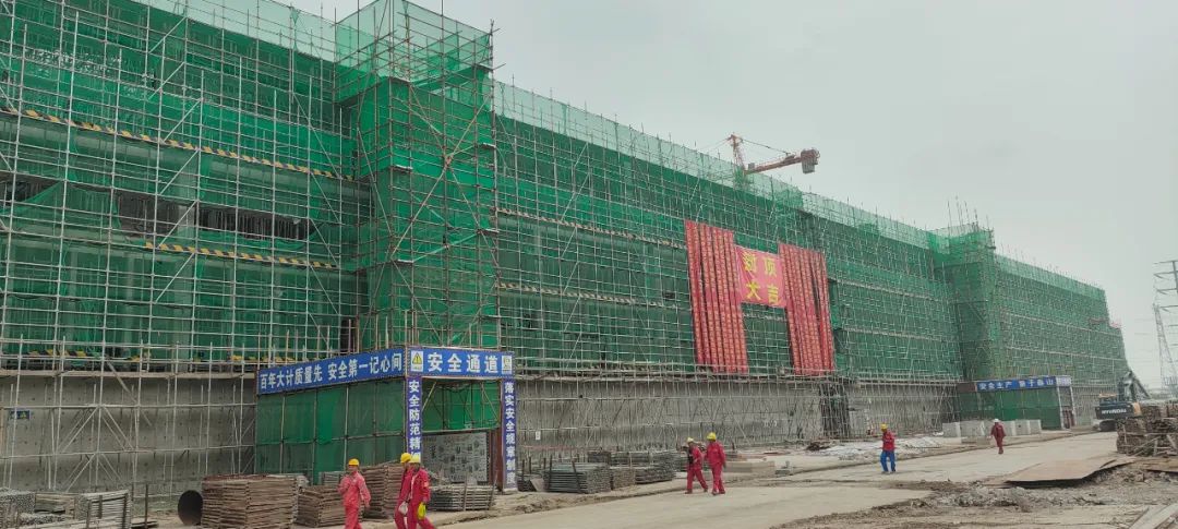 拓展阅读:沧冷公司所承建的江苏盛虹新材料POSM及多元醇项目循环水场属公辅装置,承包范围包括土建施工、工艺管道及设备安装等全部工作,是沧冷公司目前承建最大的循环水场项目。冷却塔结构主体采用钢筋混凝土框架结构,四周采用玻璃钢护板,建筑面积4606.9㎡,地上高度19.5m,内部水池深度4m、吸水池深度8m。冷却塔单塔设计处理能力5000m³/h,总处理能力50000m³/h。项目于2022年12月1日开始施工,克服了工期紧、施工任务重、资金压力大等诸多困难,以“管理创新、工效提升”为项目运营思路,确保了项目高质量、零事故顺利封顶,并赢得了业主及监理的广泛好评。据悉,该项目的建成,将一定程度填补国产聚氨酯原材料供应缺口。