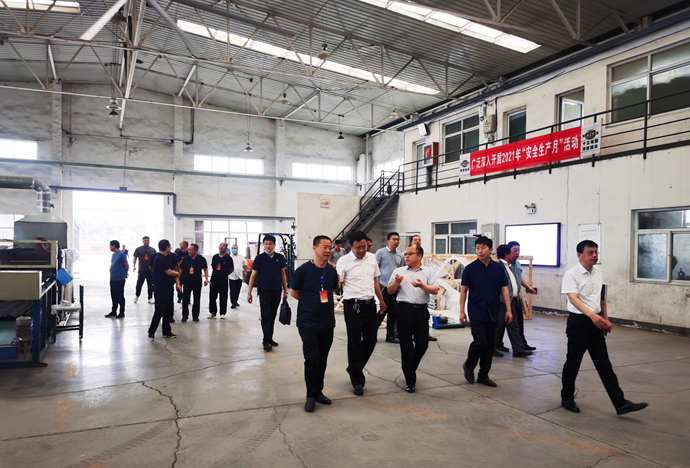 王华涛一行首先参观了公司企业文化多功能展厅,对公司的历史沿革、企业构架、业务发展、精品工程等内容进行系统的了解。随后,一行人对生产车间进行实地考察,就车间生产、技术问题进行了详细咨询和交流。并对企业生产经营、安全防范措施落实、以及现场检查企业安全管理制度落实情况等展开深入探讨。