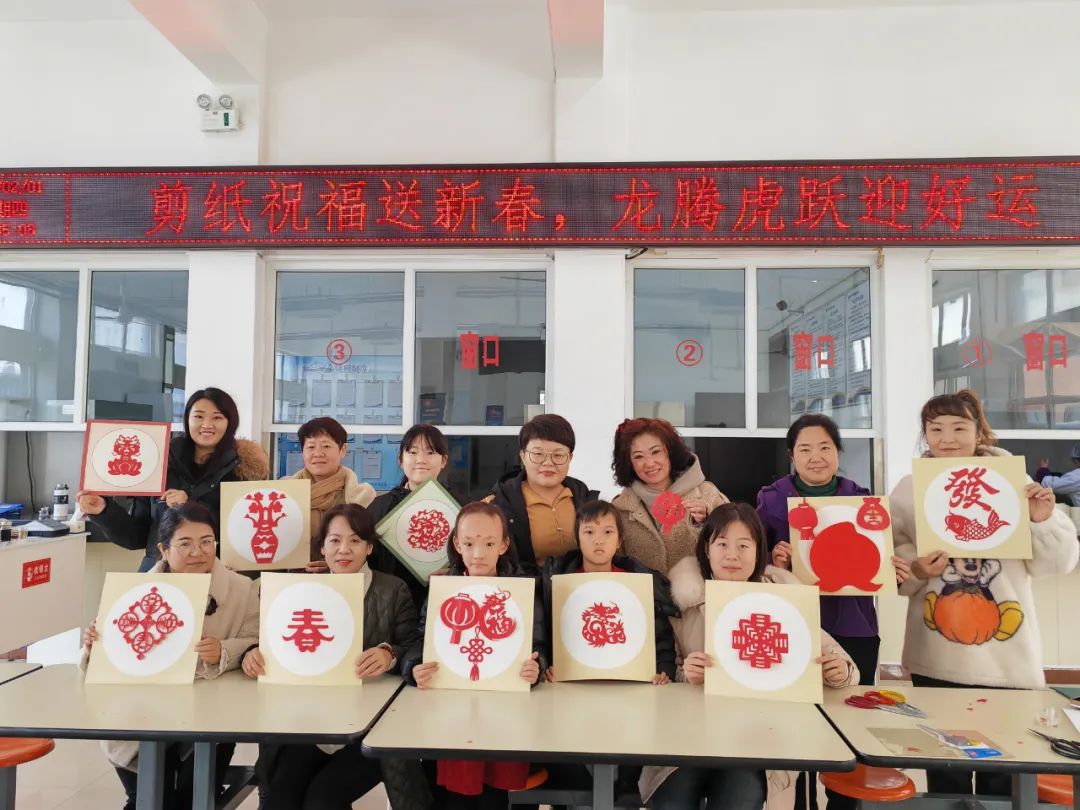 活动现场一片祥和,大家欢聚一堂围坐在一起,专心致志的创造着自己专属的窗花,虽然大家都是初次接触剪纸,手法有点生疏,速度有点慢,但是大家没有气馁,在不断的摸索与实践中,丝毫没有影响创作的热情,一张纸,一把剪刀,一双灵活的手,不一会“吉祥春”、“可爱龙”、“红灯笼”等一张张生动形象的精美窗花就诞生了,大家开心地展示着自己的作品,脸上洋溢着灿烂的笑容,欢声笑语中相互送去了新年的祝福。