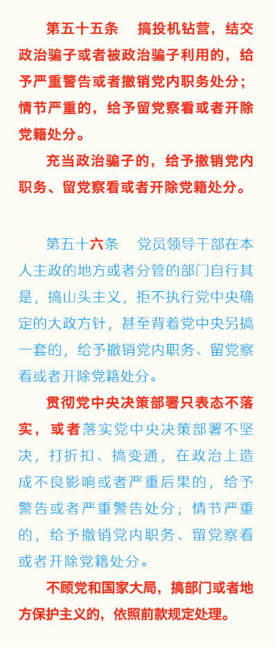 《中国共产党纪律处分条例》对违反政治纪律行为的处分