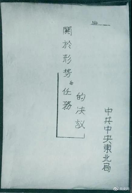 1946年7月,中共中央东北局通过了由陈云起草的《关于形势与任务的决议》,确立了创建根据地与进行长期艰苦战争的方针。该决议经中共中央修改和批准后,于8月12日正式发出。图为决议的翻印本。