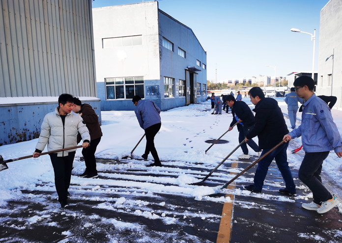 一场大雪带了银装素裹的冰雪世界,同时厚厚的积雪也为人们的出行和企业的生产带了不便。为畅通交通,方便出行,11月8日,公司领导班子带头组织员工在第一时间开展了义务扫雪活动。