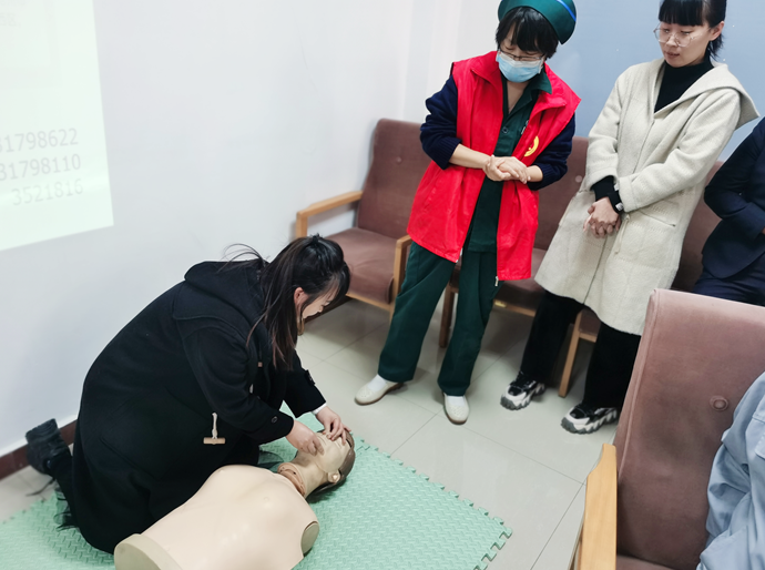 讲座中,杨慧护士长以如何紧急救援为主题,通过PPT图片说明、案例分享、现场演示等方式,重点介绍了心肺复苏、气道梗阻、AED操作等解决办法,生动直观地向职工群众普及介绍了黄金四分钟紧急措施和医疗急救常识。随后,大家模拟突发事件亲自对人体模型进行施救,并纷纷表示通过培训收获颇丰、受益匪浅。