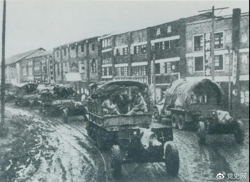 1949年11月21日,人民解放军占领黔北重镇遵义。图为解放军部队通过遵义市区。