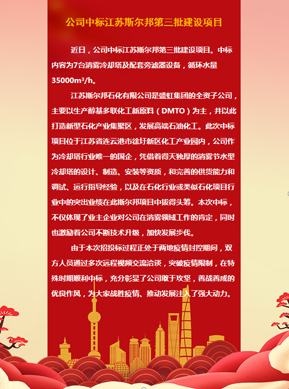 公司中标江苏斯尔邦第三批建设项目