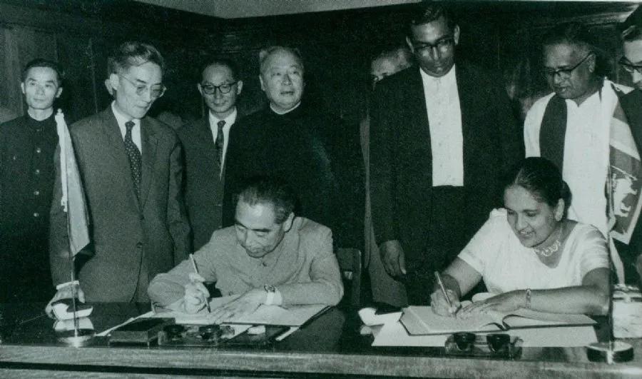 1964年2月26日至29日,周恩来访问锡兰(今斯里兰卡)时,和总理西丽马沃·班达拉奈克夫人签署中锡联合公报。