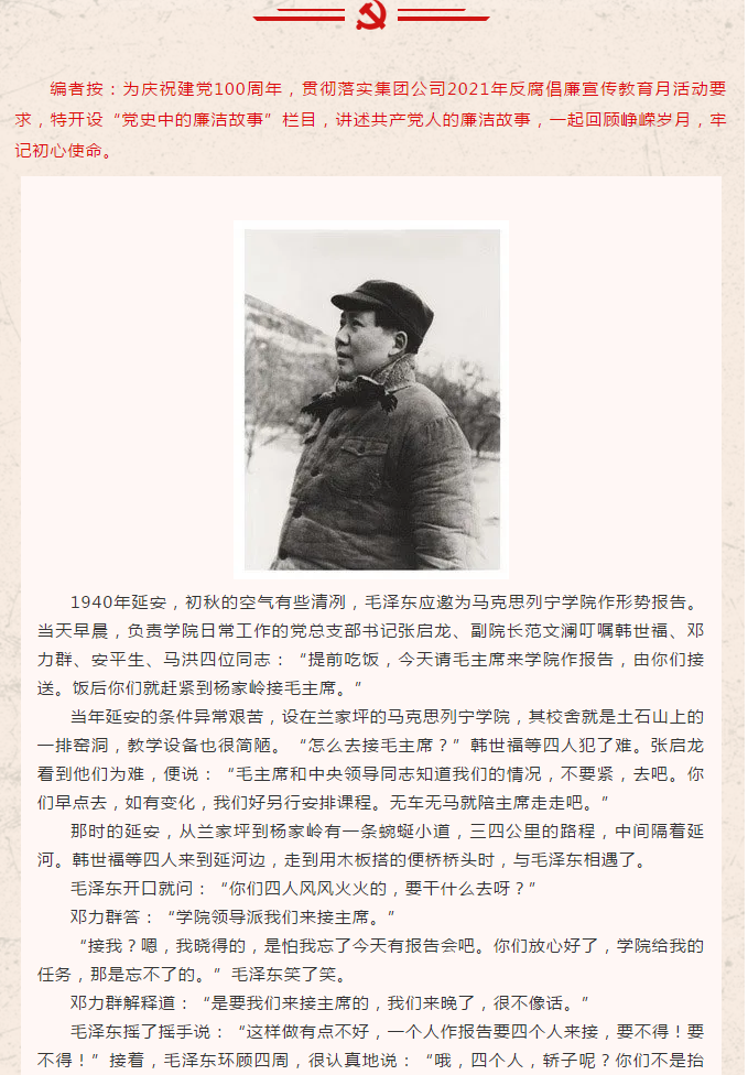 【党史中的廉洁故事1】| 主席去作报告