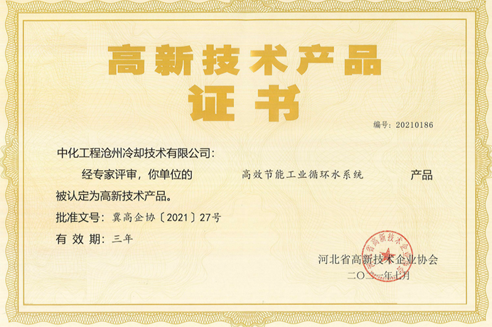 高新技术产品是国家和省高新技术重点范围、技术领域和产品参考目录的全新型产品,具有较高的技术含量、良好的经济效益和广阔的市场前景,能够提高产品市场竞争力,高新技术产品的认定直接证明了产品的高科技含量,增加了客户的信任度。为了获此荣誉,公司于2021年6月就对高效节能工业冷却塔、新型节水消雾冷却塔、高效节能工业循环水系统、新型高效节能空冷器这四大产品进行了认定工作。