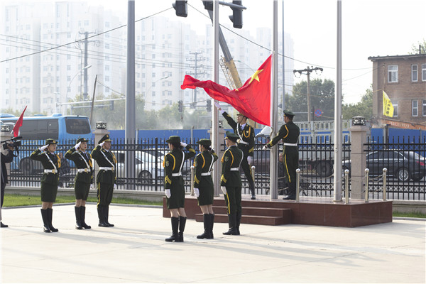 9日上午8时,公司办公楼前广场广大职工整齐排列,庄严肃立;8时18分,升旗仪式正式开始。随着一声嘹亮的口令,公司8名护旗手迈着整齐的步伐护卫着国旗庄严行进;随着雄壮有力的《义勇军进行曲》的响起,鲜艳的五星红旗冉冉升起,全体员工行注目礼;随着国旗升至旗杆的顶端,全体职工齐声高唱《歌唱祖国》,嘹亮的歌声伴随着在风中摇曳的五星红旗久久飘荡,升旗仪式圆满结束。